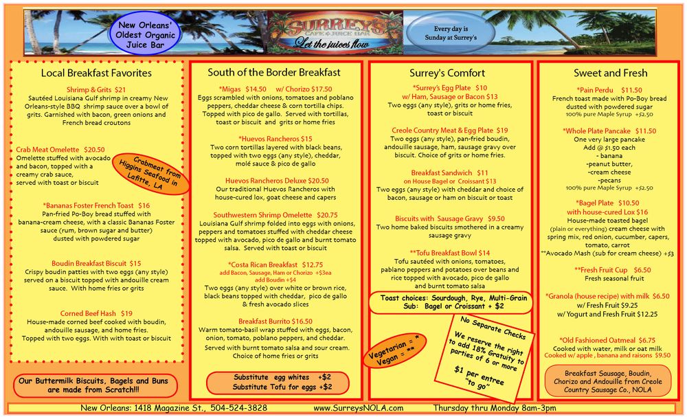 “ Excellent food and service https://blainerestaurantreport.com/2019/06/30/surreys-cafe-juice-bar-new-orleans-la-report-211/ ”